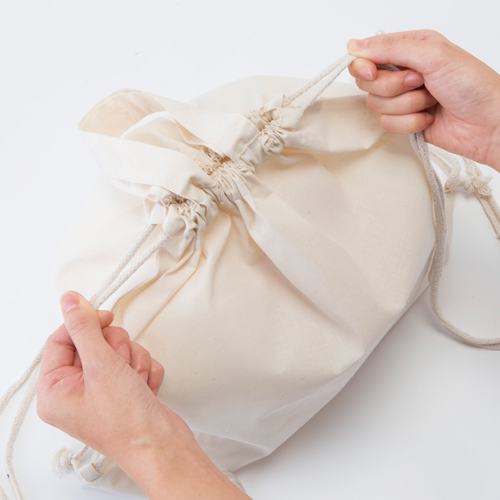 シーチング生地と比較して中身が透けにくく、厚手な低価格コットンバッグ。名入れも映えるリュック 流行のカジュアルファッションを楽しんで!