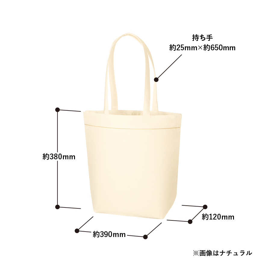 口元のラインがポイントな、使いやすく丈夫な10オンスコットン生地のデザイントートバッグです。12オンス生地のキャンバストートMよりも横幅と高さが少し大きくデザイン性も備えている為、定番トートとは一味別の提案が出来ます。