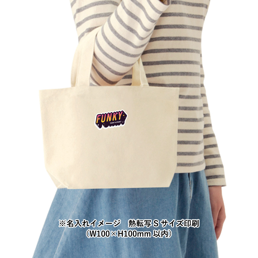 厚みのあるコットン生地のトートバッグで、ランチバッグにぴったりなサイズです。もちろんお出かけ用のサブバッグとしても活躍します。印刷方法も単色からフルカラー印刷まで対応しており、お好みのデザインでオリジナルトートバッグを作成出来ます。販路としても幅広いものがありノベルティや物販など、幅広い用途にご利用いただけます。※エコマーク付