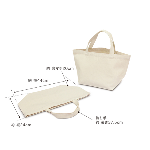 本体 約縦24×横44×底マチ20cm/ポケット:約縦16×横13cm(本体内側に2箇所) 持ち手 長さ約37.5cm(綿テープ使用) 価格