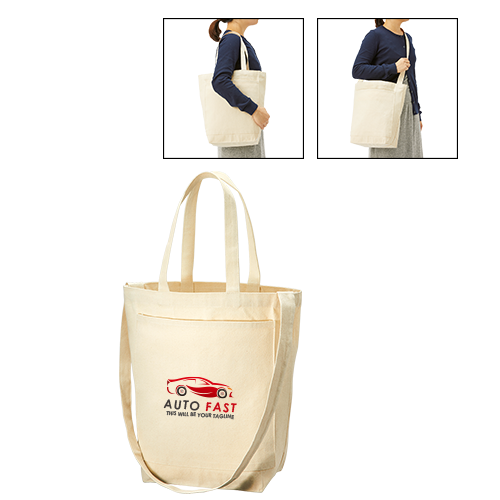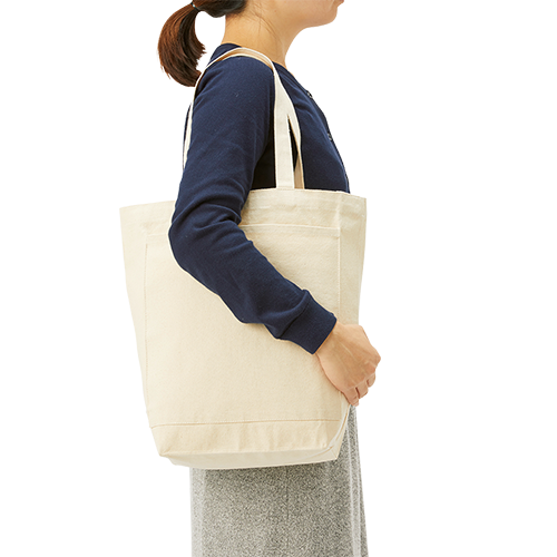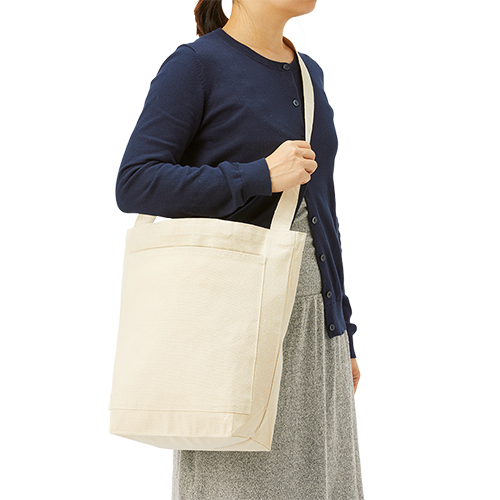キャンバスフロントポケットショルダートート ナチュラル