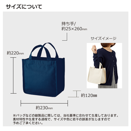 アパレルなどで人気のある、底が丸みを帯びたスクエア型のホリデートートが登場しました。しっかりとした12オンスの生地を使用しており、中の荷物が崩れにくいなど機能面にも優れた商品となっております。Sサイズはランチタイムやちょっとしたお出かけにぴったりなサイズです。印刷方法も単色からフルカラー印刷まで対応しており、お好みのデザインでオリジナルトートバッグを作成出来ます。ライブグッズからキャラクター物販まで幅広くご提案頂くことが出来ます。※エコマーク付