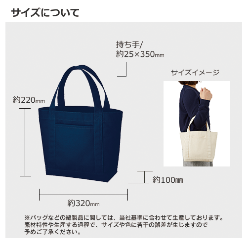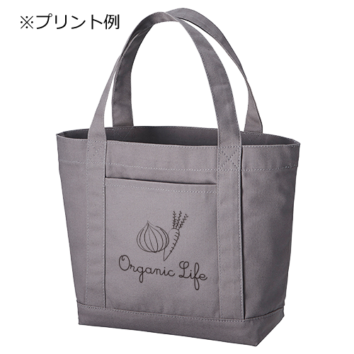 12オンスのバッグシリーズにハンドルラインが特徴のバッグが登場しました。単色の生地が大人カジュアルを演出し、幅広い世代の方にお使い頂けるバッグとなっております。表面に携帯電話や小物が入るポケットがついており、ちょっとした外出に便利なサイズ感となっています。単色からフルカラー印刷まで対応しており、お好みのデザインでオリジナルのバッグを作成できます。ノベルティとしてはもちろん、アーティストグッズやキャラクター物販としてもおすすめです。