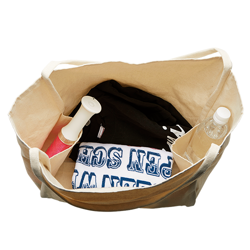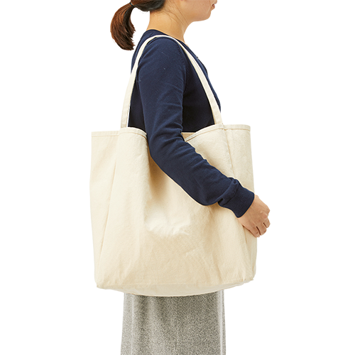 ニュアンスあるフォルムが新しいリバースブルバッグです。リバーシブルにすることで横マチを出すことが可能なので、その日の荷物量で調整することが可能です。印刷面も大きく、カラー印刷が可能なのでノベルティや記念品におすすめの商品です。また、ペンライトが入るポケット付きなので、ライブグッズなどの販促品としてもおすすめです。