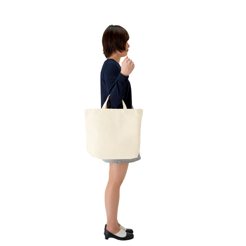 しっかりコットン生地の2WAY仕様のバッグです。容量はA3サイズ程度も余裕を持って収容可能で、ファッションスタイルに合わせて肩かけ、手持ちが選べる優れものです。
