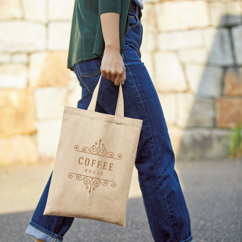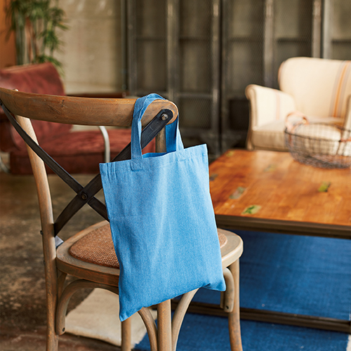 独特の霜降り調の生地は肌触りもやわらかく、名入れ映えするのに個性ある風合い。定番のA4サイズのフラットトートは、ワンポイントの印刷デザインと共に春夏の「ちょっとそこまで」を演出します。※生地の特性上、表面に小さな糸の塊(ネップ)が生じます。予めご了承ください。