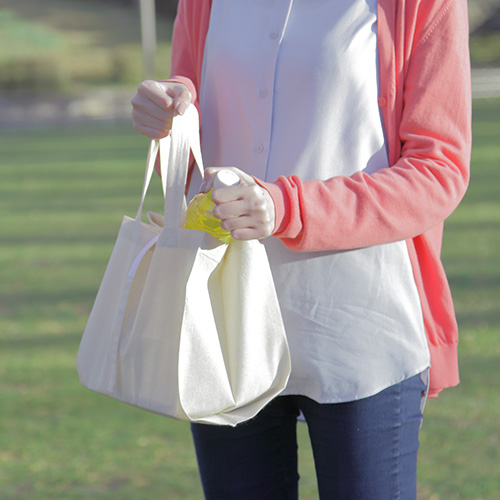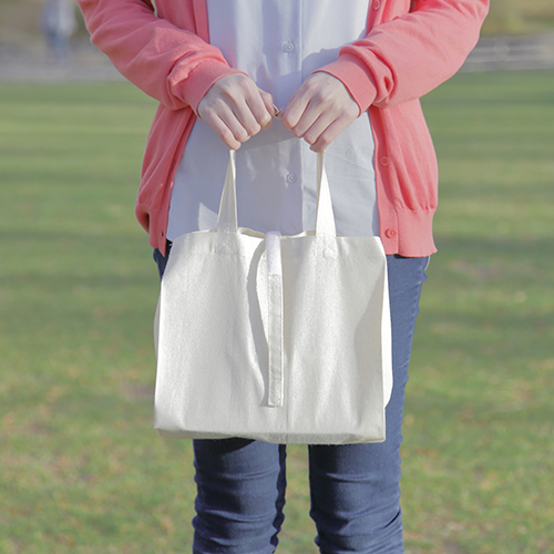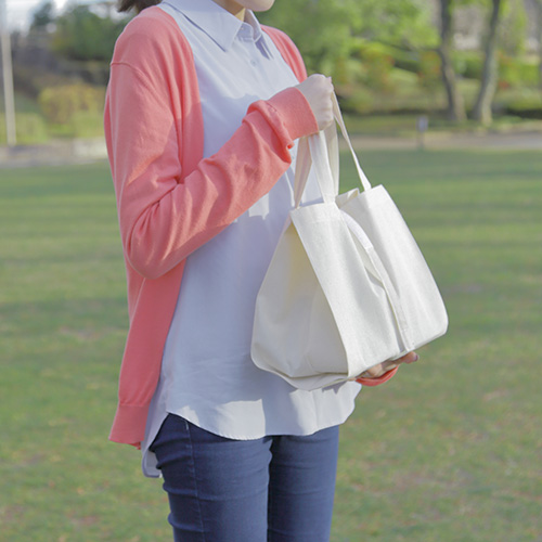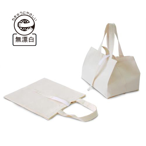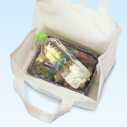 コンビニのお弁当用レジ袋と同じサイズのコットンエコバッグ。スーパーやコンビニなど、企業やお店などの販促・ノベルティに最適。レジ袋有料化関連エコバッグにもどうぞ!