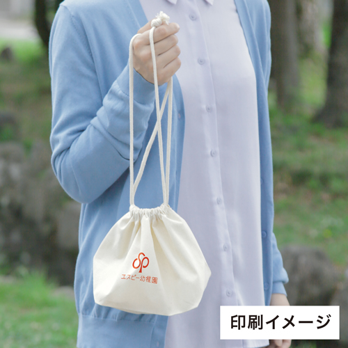小さめサイズですが、マチが大きめの巾着です。小さめのお弁当箱が入るくらいのサイズです。