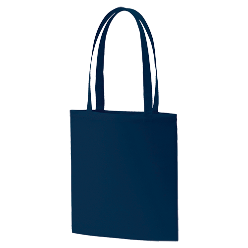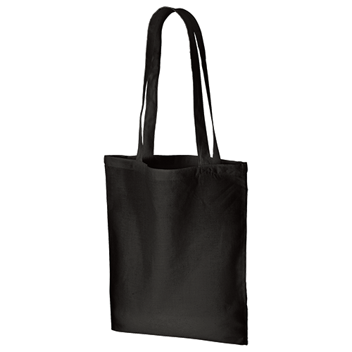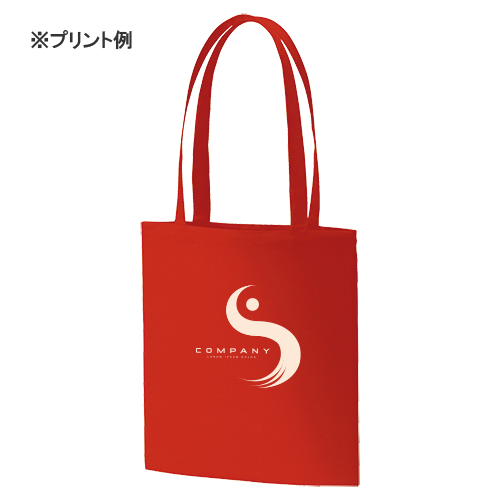 A4サイズも余裕を持って収容可能なコットンフラットトートバッグです。ロングタイプの持ち手が人を選ばない肩へのかけやすさを実現しています。