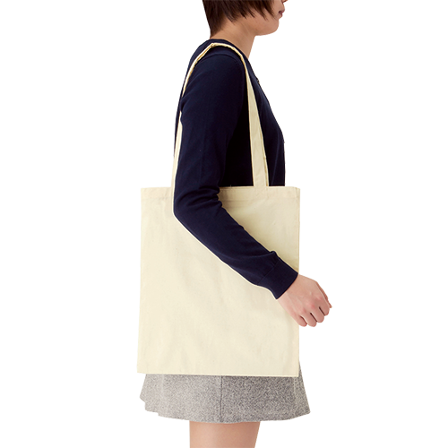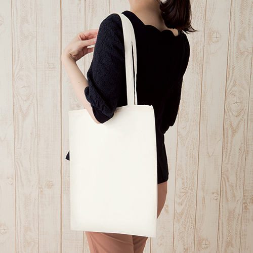 A4サイズもゆとりをもって入れられるコットンフラットトートバッグです。ロングタイプの持ち手が人を選ばない肩へのかけやすさを実現しています。肩からかけた際のシルエットも美しいものになっており、ファッションアイテムとして取り入れるのもおすすめです。アーティスト物販やアパレル向けアイテムとしてもご利用いただけます。印刷方法も単色からフルカラー印刷まで対応しており、お好みのデザインでオリジナルトートバッグを作成出来ます。※エコマーク付