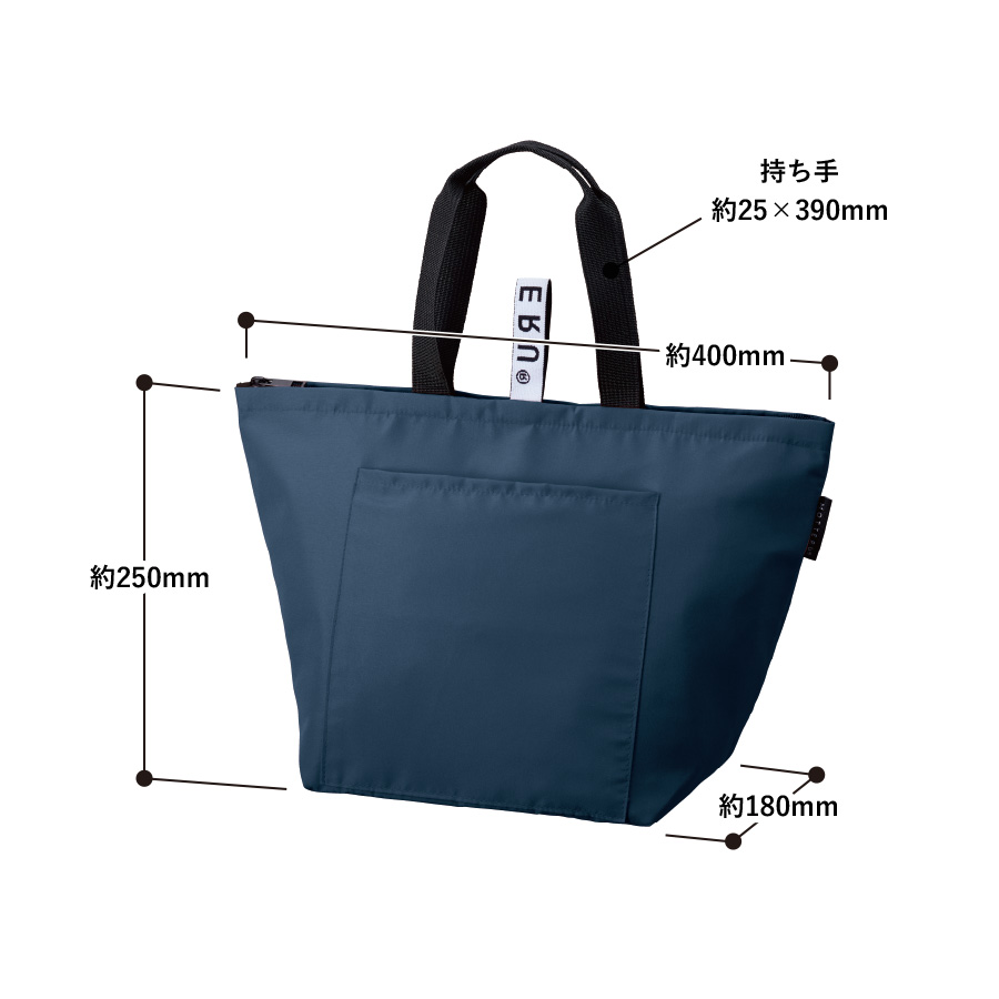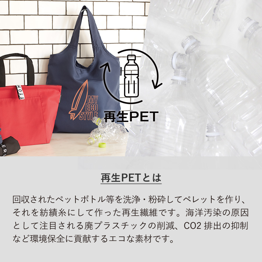 回収されたペットボトルなどから再生された生地を使用した環境にやさしいクーラーバッグです。クルリトシリーズの特徴であるゴムが付いており、折りたたんでコンパクトに持ち運ぶことが出来ます。冷凍食品などをそのまま入れることができるようにマチを広く設計しており、500ml缶を8本収納できるサイズとなっております。お弁当入れからちょっとしたお買い物まで、さまざまなシーンで活躍するバッグですので、キャンペーンでのプレゼント品やスーパーなどのオリジナルエコバッグなど幅広くご提案頂けます。