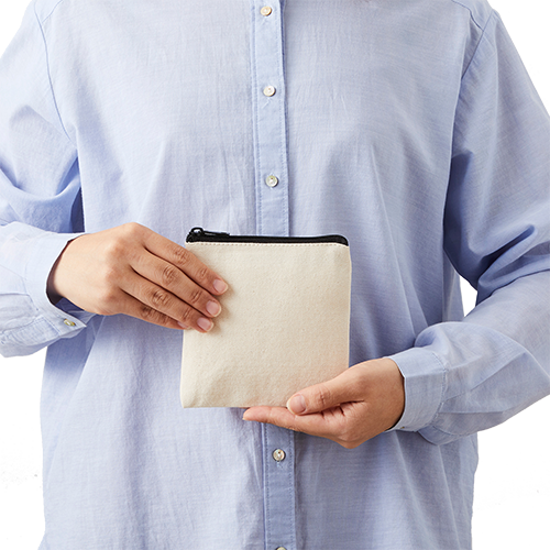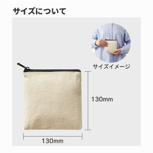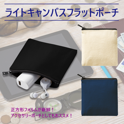 人気のフラットポーチにSSサイズが登場しました。真四角のフォルムをしたキャンバス生地のポーチです。コスメや鍵などの小物入れとして活躍するコンパクトサイズのポーチは、バッグやお菓子とのセット販売もおすすめです。ナチュラル・ナイトブラック・ネイビーの3色展開となっており、コスメブランドなどの販促品としてはもちろん、キャラクターグッズやレジャー施設の物販品まで幅広くご提案頂けます。