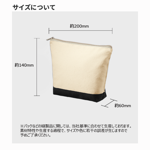 トートバッグで人気の「カラーボトムシリーズ」のラインナップにポーチが加わりました。8オンスの生地を使用しているので、しなやかで使いやすい仕立てとなっております。人気の形状である舟形となっており、程よいボトムカラーのアクセントが印刷した時のオリジナリティをグッと高めます。化粧品の購入特典やオリジナルキャラクターのグッズ作成におすすめの商品です。