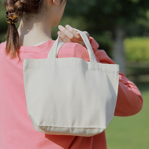 人気のミニトート型のコットンエコバッグ。女性向けブランドなど、企業やお店などの販促・ノベルティに最適。レジ袋有料化関連エコバッグにもどうぞ!