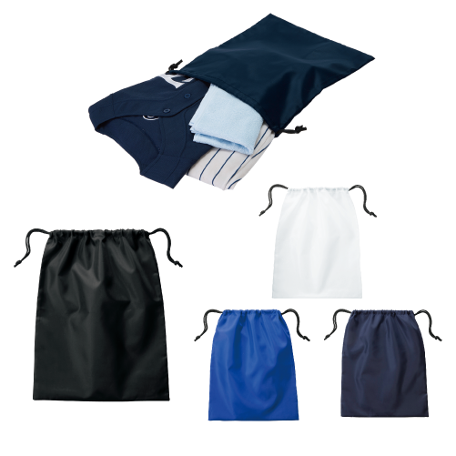 多用途に使えるポリエステル素材の巾着です。A3サイズ程度の大きさなので、旅行の際の小分けバッグとして、部活、サークル課外活動などの洋服入れなどアイデア次第でマルチに活躍します。
