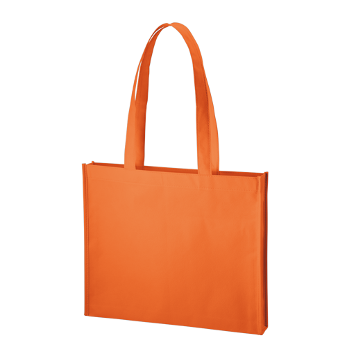 スリムな横型の不織布バッグです。持ちやすいようにサイズは少し小さめにしており、ショルダーを長めにすることで肩からかけやすい仕様になっております。マチのサイズもスリムにしているので、書類を入れるのにも適しています。色はフルラインナップの豊富な展開となっており、企業や学校のカラーに合わせてご提案頂けます。展示会やオープンキャンパスでの配布用のバッグとしておすすめのアイテムです。
