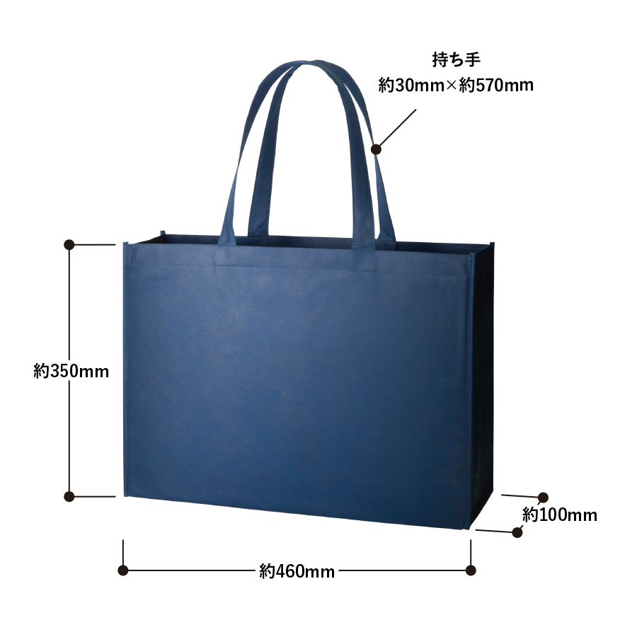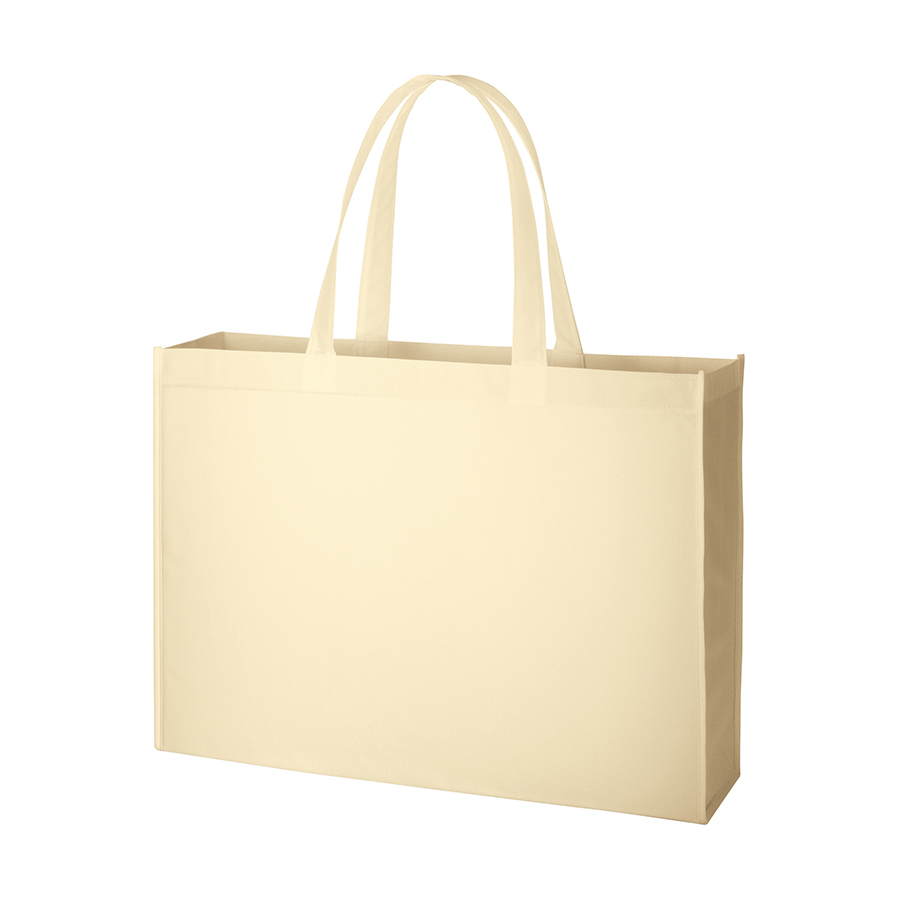 便利な底板入りの不織布トートバッグです。A3サイズも余裕を持って入れることが出来る点と、選べる豊富な色展開が魅力です。印刷範囲も大きい為、展示会での配り物トートなど大きなイベントシーンで活躍が期待できます。