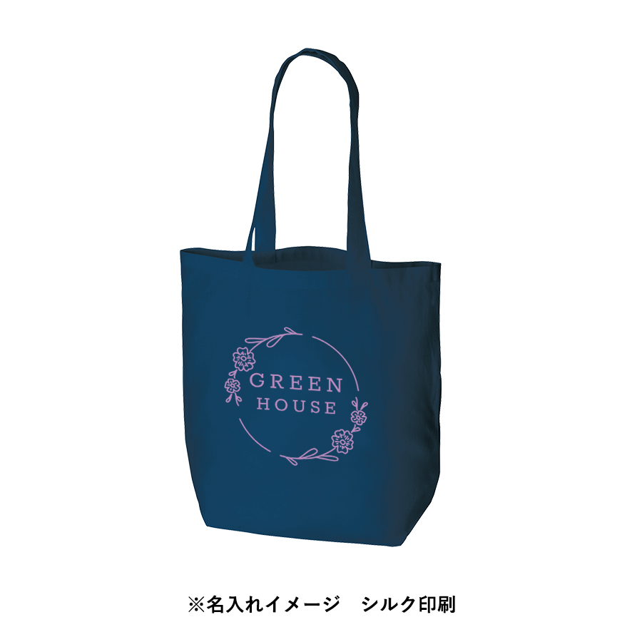 オーガニックコットンを使用した船底タイプのバッグです。肩掛けができ、A4サイズが収納可能なマチ付のバッグは、幅広い業界に人気があります。農薬を使用せずに栽培されたオーガニックコットンを使用しているので、環境問題への取り組みのアピールにも繋がります。印刷方法も単色からフルカラー印刷まで対応しており、アパレルのノベルティや展示会での資料入れとしておすすめです。