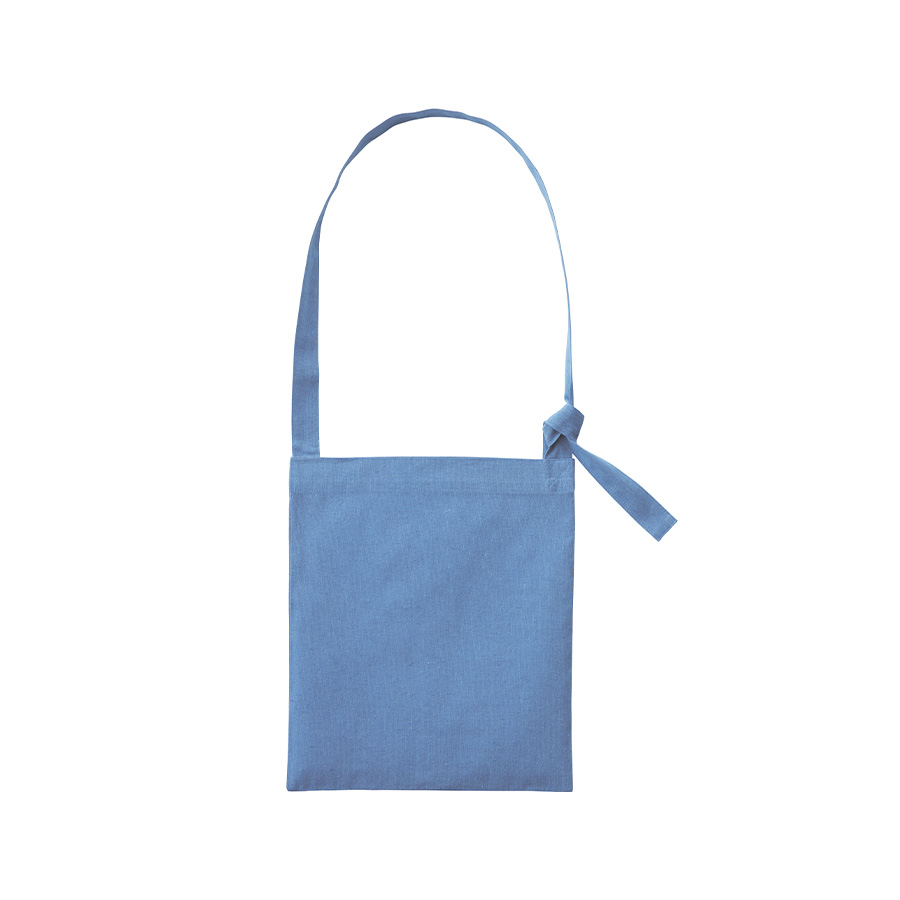 シャンブリックコットンシリーズにショルダータイプが登場しました。リサイクルコットンを使用したシャンブリック生地を使用しております。ループ部にショルダーを通して結ぶことにより、長さを調整できる仕様となっており、リボンのような結び目がアクセントのバッグです。肩掛け・斜め掛けができ、A4サイズが入るフラット型なので使いやすいサイズ感となっております。セミナーや学習塾の資料、テキスト入れなど幅広くご提案頂けます。
