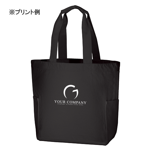 A3サイズも余裕を持って収容可能な厚みのあるコットントートバッグです。ペットボトルが収納可能な便利なサイドポケット付です。肩かけ利用も可能です。