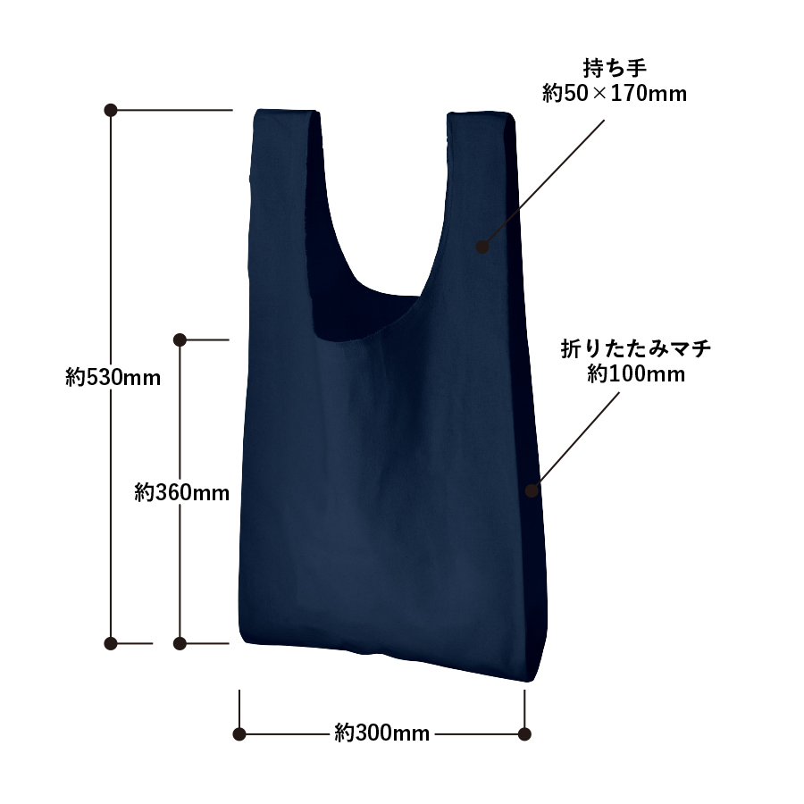 本体/約300×360(持ち手含む530)(mm)・持ち手/約50×170(mm)・折りたたみマチ/約100(mm)